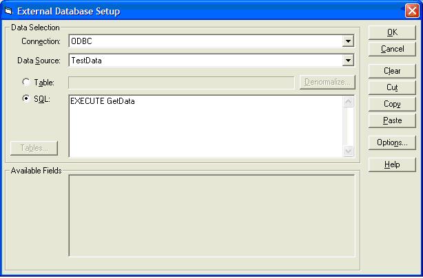 In the following example, the Stored Procedure “GetData” includes a start date for retrieving data. It is placed following the Stored Procedure name.